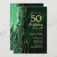Verde esmeralda e ouro agate 50º convite de aniversário. Elegante design moderno com aquarela agate marble geode background, faux glitter gold e typografia script font. Trendy convida o cartão perfeito para uma comemoração de dia das mulheres na moda. Impressos convites Zazzle ou modelo de impressão digital instantânea para download.