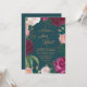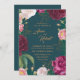 Este cartão de convite para casamento floral esmeraldo verde e dourado apresenta rosas de aquarela e peônias em cor vermelha, branca e rosa,Um cartão perfeito para a queda e casamentos no inverno de verão do primavera formal e clássico