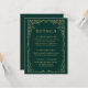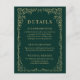Complete your wedding suite with this elegant emerald green and gold minimalist Details Card. Featuring a rich jewel green background and refined gold accents, this insert is perfect for sharing accommodations, transportation, schedule information, directions, or your wedding website. Clean typography and a modern layout ensure clear readability while maintaining a luxurious and cohesive style that matches the full emerald and gold invitation set. Fully customizable and print ready.