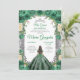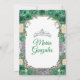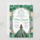 Convite Emerald Green Quinceanera Silver Crown Glitter