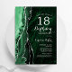 Emerald Green e prata agate 18º convite de aniversário. Elegante design moderno com aquarela agate marble geode background, faux glitter prata e tipografia. Trendy convida o cartão perfeito para uma comemoração de dia das mulheres na moda. Impressos convites Zazzle ou modelo de impressão digital instantânea para download.