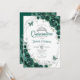 Convite Emerald Green Silver Floral Quinceanera