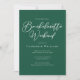 Este convite para o fim de semana da esmeralda verde esmeralda apresenta um roteiro branco clássico para uma noiva que ama o exterior e a natureza. Celebre seu amigo com esta cor tranquila neste convite para festas de solteira minimalista e chique.