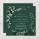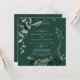 Este convite de casamento verde esmeralda é perfeito para um casamento de boho. A elegante, porém rústica, design apresenta folhas de cor verde-d-água escura e umeucalipto com uma moderna sensação de floresta boêmica.