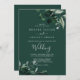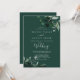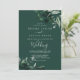 Este cartão de casamento verde esmeralda é perfeito para um casamento boho. A elegante, porém rústica, design apresenta folhas de cor verde-d-água escura e umeucalipto com uma moderna sensação de floresta boêmica.