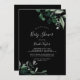 Este chá de fraldas preto esmeraldo é perfeito para um chá de fraldas. A elegante, porém rústica, design apresenta folhas de cor verde-d-água escura e umeucalipto com uma moderna sensação de floresta boêmica.
