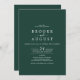 Este esmerald Greenery coordena tudo em um convite de casamento é perfeito para um casamento de boho. A elegante, mas rústica design apresenta verde escura moderno com uma sensação moderna de floresta boêmica. Coordena-se com a Coleção Emerald Greenery de New & Yummy Paperie. Salve o papel, incluindo os detalhes na parte traseira do convite de casamento, em vez de em um cartão de cercado separado. Inclua as informações de RSVP também se seu convidado estiver respondendo eletronicamente (opcional).