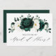 Elegante verde-esmeralda e botânico floral branco de marfim você será minha madrinha de casamento Convite com rosas brancas e elegantes folhas verdes de cor d'água eucalipto. Entre em contato comigo para obter ajuda sobre a personalização ou se você precisar de outro produto com este design.