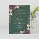 Celebrate your love story with this Emerald Green and Ivory Floral Wedding Invitation. Designed with a sophisticated layout, this invitation features a rich, moody emerald backdrop that perfectly contrasts with elegant white Calla Lilies and deep plum Hydrangeas.