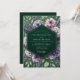 Immerse your union in an atmosphere of moody elegance with this stunning botanical design. A rich, dark emerald green background sets a dramatic stage for lush blossoms in shades of lavender, lilac, and mauve. The interplay of deep jewel tones and verdant foliage creates a sophisticated and romantic ambiance, perfect for a refined, nature-inspired affair.