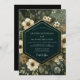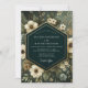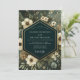 A deeply romantic and moody design unfolds with lush, dark emerald greenery and cream-toned blooms. This elegant composition evokes a sense of refined opulence, perfect for a sophisticated affair. The floral arrangement features soft, delicate petals interspersed with textural foliage.