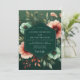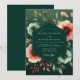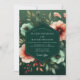 Evoke an atmosphere of moody romance with this elegant, artistic design. Set against a deep emerald green background, soft blooms in shades of peach, coral, and pale teal create a stunning contrast. The painterly arrangement features lush foliage and delicate poppies, giving the composition a rich, botanical depth for a sophisticated union.