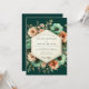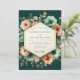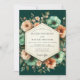 Embrace opulent romance with this stunning botanical design. A dramatic emerald green background highlights a lush arrangement of anemones and poppies. Painterly blossoms in vibrant teal, soft peach, and warm coral create a beautiful, high-contrast composition for an elegant union.