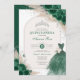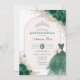 O convite perfeito para a quinceañera da sua filha está finalmente aqui! Este convite cômico e adorável da quinceañera apresenta um bonito vestido de princesa verde esmeralda, confete com brilho prateado e elementos florais de boho tropical. Clique no botão "personalizar mais" se quiser reorganizar e formatar o estilo e a posição do texto.