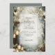 Névoa da floresta etérea e árvores com luzes de velas penduradas convites para casamento em cores subjugadas em névoa. Cinza azul sólida na parte de trás para pegar as cores profundas na frente do convite. Faça o pedido no impressão, como um download digital ou ambos. Crie um convite temático etéreo para o seu dia especial.