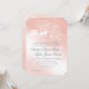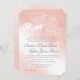 Encantando o convite para o casamento de contos de fadas com carruagems e corações com monograma de cor rosa-rosa-pincelada bonito. Design de monograma branco esmaecido com texto principal em cinzas leves.