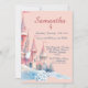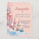 Um Convite Real para um Castelo de Inverno Mágico! Este encantador Convite de Castelo de Inverno Enfeitiçado abre as portas para uma celebração de conto de fadas para o 4º aniversário da sua pequena princesa. Com um castelo caprichoso em aquarela com torres cobertas de neve e bandeiras tremulantes em tons suaves de rosa, bege e azul, este design cria um início perfeito de conto de fadas para o seu dia especial.