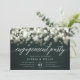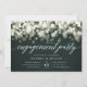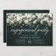 Our elegant engagement party invitations in chic hunter green and white feature a top border of champagne-hued bokeh lights, with "engagement party" in chic calligraphy script typography. Personalize with your engagement celebration details beneath in white. A chic design in dark forest green and white for modern couples and elegant events.