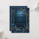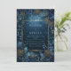 Set a tone of pure magic for your ceremony with this breathtaking starlit design. The deep, velvety midnight blue backdrop is alive with shimmering gold stardust and glowing bokeh particles that create an ethereal, celestial atmosphere. A rich border of dark blue foliage and intricate gold-lined peony blossoms surrounds a slender glowing gold frame, adding a layer of opulent texture and romantic mystery. This composition feels like a window into an enchanted garden, perfect for couples wanting a high-drama, luxury aesthetic that balances nature with a touch of fantasy. This is a wedding invitation designed for formal evening celebrations, enchanted forest ceremonies, or celestial-themed receptions held under the stars.
