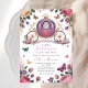Celebrate the royal arrival with this enchanting baby shower invitation! A glittering pink carriage takes center stage, surrounded by dreamy florals, fluttering butterflies, and soft pastel details. Perfect for a mom-to-be expecting her little princess, this whimsical and elegant design adds fairytale magic to any celebration.