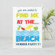 Encontre-me no Convite de Festa de Verão na Praia, projetado por Nisha Prabhu. Totalmente Personalizável. Personalize com seus detalhes. Prepare-se para absorver o sol e deixar as ondas do oceano serem sua trilha sonora em nossa Festa de Verão 'Encontre-me na Praia'! Este convite cativante e vibrante captura o espírito despreocupado do verão com sua tipografia lúdica e gráficos encantadores inspirados na praia. Seja você um banhista, um praticante de surf ou simplesmente um amante de costas quentes e arenosas, este convite transportará seus convidados para um dia cheio de risadas, relaxamento e vibrações infinitas de verão. Então, tire os sapatos, coloque seu maiô favorito e junte-se a nós para uma celebração costeira como nenhuma outra. Corra, vagas limitadas – responda agora para garantir seu lugar ao