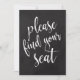 Um elegante cartaz de casamento de vanguarda, apresenta o texto "Por favor, encontre seu assento" em uma fonte extrovertida, a textura do pincel adiciona um sentimento espontâneo e brincalhão. A cor de fundo pode ser personalizada de acordo com as suas necessidades e preferências, contacte-me se tiver alguma solicitação especial.