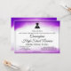Este convite de reunião de ex-alunos do ensino médio apresenta um design minimalista preto e branco e bordas superior e inferior de aquarela roxa. Preencha os campos do modelo de informações pessoais, remova o texto ou clique em personalizar para selecionar uma cor, tamanho e estilo de fonte de sua preferência. Você também pode substituir a imagem do graduado preto pelo logotipo ou mascote da sua escola. Uma imagem quadrada funciona melhor.