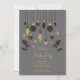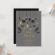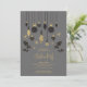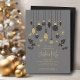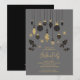 Os ornamentos das árvores de Natal em preto e dourado, a sombra e as bagas em uma cinza destacam esses convites para festas de Natal com seus detalhes em caracteres quicos. Perfeito para as suas festas de férias pessoais ou profissionais. Encomendar convites de festas INSTANTÂNEOS DE DOWNLOAD e/ou IMPRESSOS.