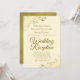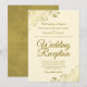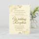 Este convite simples é projetado para convidados que comparecerão ao recebimento, mas não à cerimônia de casamento em si. Apresenta um design elegante e sofisticado com letras em escrita dourada fancy sobre um fundo marfim, creme ou branco-esbranquiçado e floreios e espirais dourados ornamentados em falso foil nos cantos. Bela maneira de convidar amigos e familiares para celebrar com você!