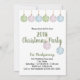 Este convite de festa apresenta três enfeites de Natal redondos em cores não tradicionais em verde pastel, rosa e azul com estrelas brancas formando uma árvore abstrata. Os enfeites são empilhados e escalonados em tamanho para formar uma árvore de Natal. O tema dos enfeites é levado para a parte de trás com todo o texto da festa. Personalize o texto na frente e no verso para os detalhes da sua festa.