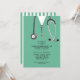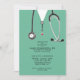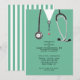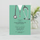 Creative berçário formando convites com esfregões hospitalares e estetoscópio. Edite texto para criar um convite ou anúncio exclusivo para festas de formatura na escola de enfermagem.