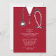 A graduação de uma escola de enfermagem criativa convida a apresentar os esfregões vermelhos e um estetoscópio. Edite texto para criar um convite de festas ou anúncio de formando escolar de enfermagem.