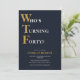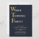 Celebre sua aniversário de 40 anos em estilo e com humor! Em um fundo azul marinho, o ouro e a tipografia branca no topo lê "Quem está girando quarenta?" com o WTF maior e em ouro. Por baixo, você pode personalizar a tipografia branca e dourada com seus próprios detalhes. Único, atrevido e perfeito para as grandes comemorações de aniversário!