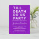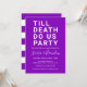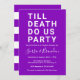 Hospede um chá para a noiva e o noivo com este convite simples, ousado e divertido "ATÉ A MORTE DO PARTIDO DOS EUA". O modelo de texto permite personalizar todo o texto com os detalhes de evento desejados. Este convite está disponível numa variedade de cores - mostradas aqui em texto branco com um fundo roxo vibrante e um padrão de stripes de râguebi correspondente no verso. Muitos produtos de terceiros correspondentes estão disponíveis para coordenar o tema.