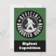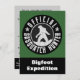 A criatura legendária conhecida como bigfoot é o centro de uma imagem oficial do estilo do logotipo do caçador do sasquatch em preto e branco, com tipo afligido efeito do grunge aplicado. Mude a cor do fundo (mostrada como o verde) e escolha um texto de coordenação para o verso clicando o botão da personalização.