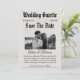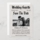 Procurando uma maneira exclusiva e peculiar de salvar a data? O nosso estilo de jornal salvar a data é a escolha perfeita! Personalize-o com o seu próprio manchete hilário, uma fotografia engraçada do casal e um anúncio lúgubre do seu grande dia. Seus hóspedes vão adorar este convite!