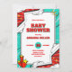 Celebrar com uma explosão de cor e alegria! Este engraçado convite para chás de fraldas no estilo cômico apresenta texto vermelho em negrito com uma sombra e sotaques dinâmicos de pop-arte. Perfeito para os pais querendo adicionar talento divertido à sua celebração.