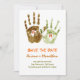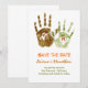 dois carimbos de mãos com as letras do nome da noiva e do noivo. Design original doce e engraçado para anúncios de salvar a data.