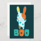 Coelho engraçado, fofo e assustador do Dia das Bruxas feito em cor laranja sazonal, azul, lacrimejante, amarela. Texto Colorido do Boo. design de excelente para o Holiday Season.