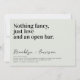 Convide amigos e família para se juntarem a vocês para suas celebrações de casamento com este divertido convite para o casamento. No texto lê-se "Nada de rico apenas de amor e de bar aberto"