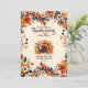 The design invitation is aimed at those who want their Thanksgiving feast with all the traditional trappings - autumn seasonal flowers, and a turkey surrounded by autumn motifs, celebrating Thanksgiving.