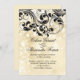 Este convite de casamento régio, elegante e sofisticado apresenta floreios em glitter preto sobre um fundo de boque ivory metálico falso. Clique no botão PERSONALIZAR para adicionar texto. Disponível em 7 cores. Convites, RSVPs, guardanapos de coquetel e mais disponíveis. Para adicionar mais glamour, escolha o papel Luxe Pearl ou Champagne Shimmer. Para perguntas ou pedidos de outros itens com este design, entre em contato: cheryl@cheryldanielsart.com. "Glitter Curlicues on Faux Metallic" por Cheryl Daniels © 2015.