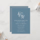 Cartão de Convite para Boate de Monograma Clássico Elegante Azul Dusty. Celebre o seu dia especial com esta elegante e bela carta de convite para casamento para embelezar a sua ocasião especial. Todos os textos estão pré-organizados para que você personalize fácil e rapidamente com seus próprios detalhes.