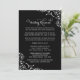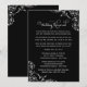Crie uma primeira impressão dramática com este convite de jantar de ensaio de casamento preto. Os floreios de pergaminho branco crocante e a caligrafia refinada se destacam ousadamente contra o fundo escuro, enquadrando um encantador poema rimado que detalha a prática da cerimônia e o jantar comemorativo. O contraste marcante dá a este design uma elegância sofisticada e formal. Personalize todo o texto, cores e fontes para se adequar ao seu estilo.