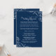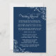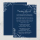 Crie um visual sofisticado e atemporal para a noite do seu ensaio com este convite de jantar de ensaio de casamento navy. Floreios de arabescos brancos e caligrafia refinada enquadram um poema rimado encantador que guia os convidados pelo ensaio da cerimônia e jantar subsequente. O fundo navy clássico combina perfeitamente com os acentos brancos nítidos. Cada detalhe é totalmente editável para combinar com o estilo do seu casamento.