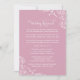 Traga uma elegância doce e discreta para a noite do seu ensaio com este convite de jantar de ensaio de casamento em rosa pó. Flores em branco e caligrafia refinada enquadram um poema rimado encantador que guia os convidados da prática da cerimônia para o jantar. O fundo rosa suave e silenciado cria uma atmosfera romântica e convidativa. Personalize todos os elementos, incluindo texto, cores e fontes, para se adequar à sua celebração.