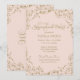 Reúna o seu cortejo para um ensaio e jantar de celebração com este convite elegante em rosa e dourado. Os ornamentos de filigrana dourada criam uma borda luxuosa em torno do título de "Ensaio e Jantar" em caligrafia e detalhes formais do evento. O fundo suave rosa e os acentos dourados quentes oferecem um visual sofisticado e romântico. Todo o texto, cores e layout são totalmente personalizáveis para se adequar ao seu evento.