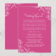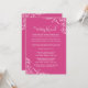 Faça uma declaração ousada e divertida com este convite de jantar de ensaio de casamento rosa quente. Florescimentos de pergaminho branco enquadram os cantos enquanto a caligrafia elegante destaca um poema rimado divertido que compartilha todos os detalhes da noite. O fundo rosa vibrante traz energia e emoção para a celebração pré-casamento. Personalize todos os elementos, incluindo texto, cores e fontes para combinar com o seu estilo.