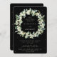 Um convite de janto de ensaio de casamento negro, para quando o(s) evento(s) é(são) baseado(s) no mesmo local. Apresentando uma coroa de groselhas de neve pintadas manualmente e eucalipto. Todo texto é totalmente editável e os pontos dispersos na frente e atrás podem ser excluídos antes de fazer o pedido, se preferir. Por favor, veja esta Coleção na minha loja para ver os arranjos florais do alternativo, cores diferentes e para coordenar itens.