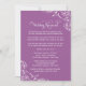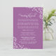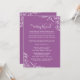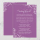 Defina um clima suave e romântico para a noite do seu ensaio com este convite de jantar de ensaio de casamento violeta lavanda. Os floreios de pergaminho branco gracejam os cantos enquanto a caligrafia fluida apresenta um doce poema rimado com todos os detalhes do seu evento. O fundo suave lavanda dá a este design um charme sonhador e inspirado no jardim. Todo o texto, cores e fontes são totalmente personalizáveis para se adequar ao seu estilo.